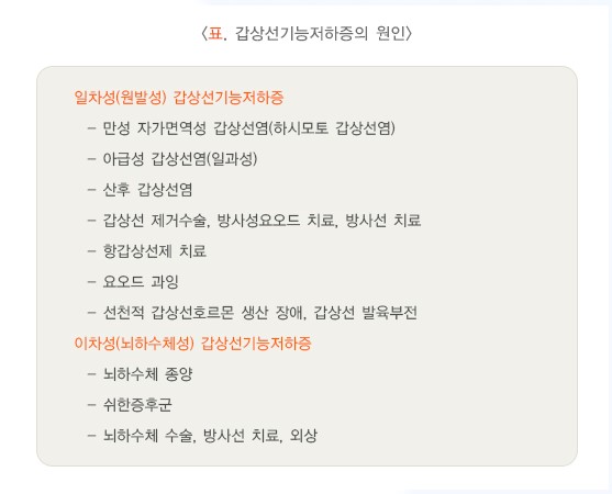 - 부족 또한 기능저하증을 악화할 수 있음