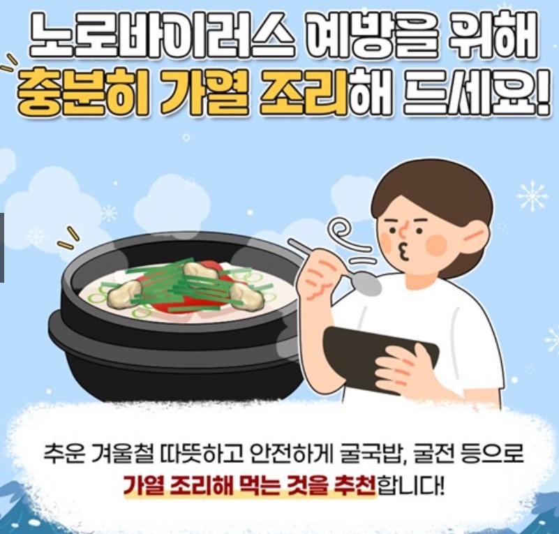 식품의약품안전처에서도 겨울철 노로바이러스 감염 증가에 대비한 위생수칙 준수를 강조하고 있습니다.