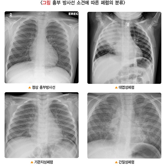 초기에는 X-ray에서 폐렴이 명확하게 보이지 않을 수도 있어, 경과 관찰이 매우 중요합니다.