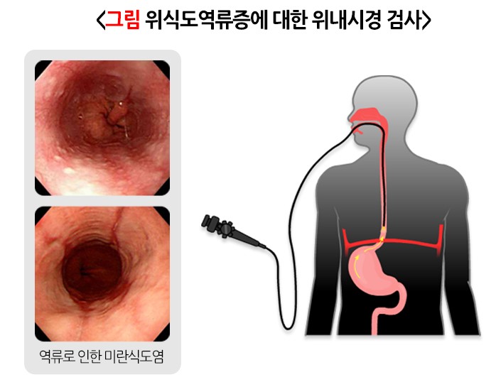 역류성식도염은 위산이 식도 하부로 역류하여 식도 점막에 염증이 생기는 질환입니다.
