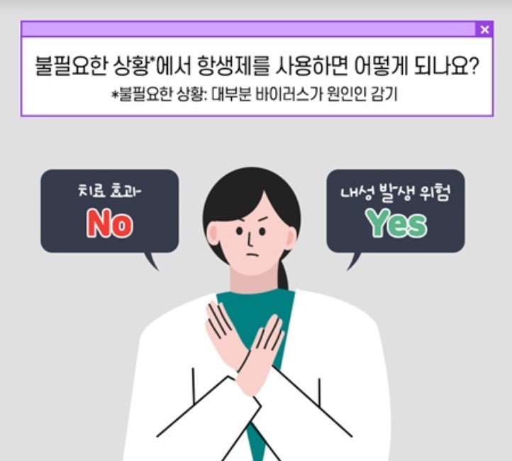 항생제 오남용의 가장 대표적인 배경은 바이러스 감염을 세균 감염으로 오해하는 경우입니다.